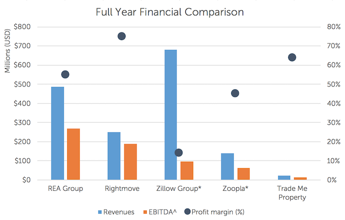 I would argue this is a factor of business model maturity. All markets have significant competitive tension. In Australia, REA Group greatly benefits from a vendor-funded marketing environment (where home sellers pay for marketing directly). But clearly Rightmove and REA Group simply have more experience and expertise around monetisation.
