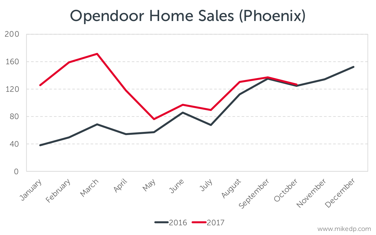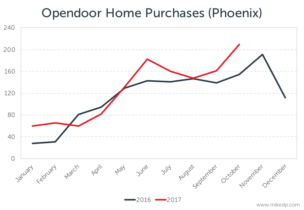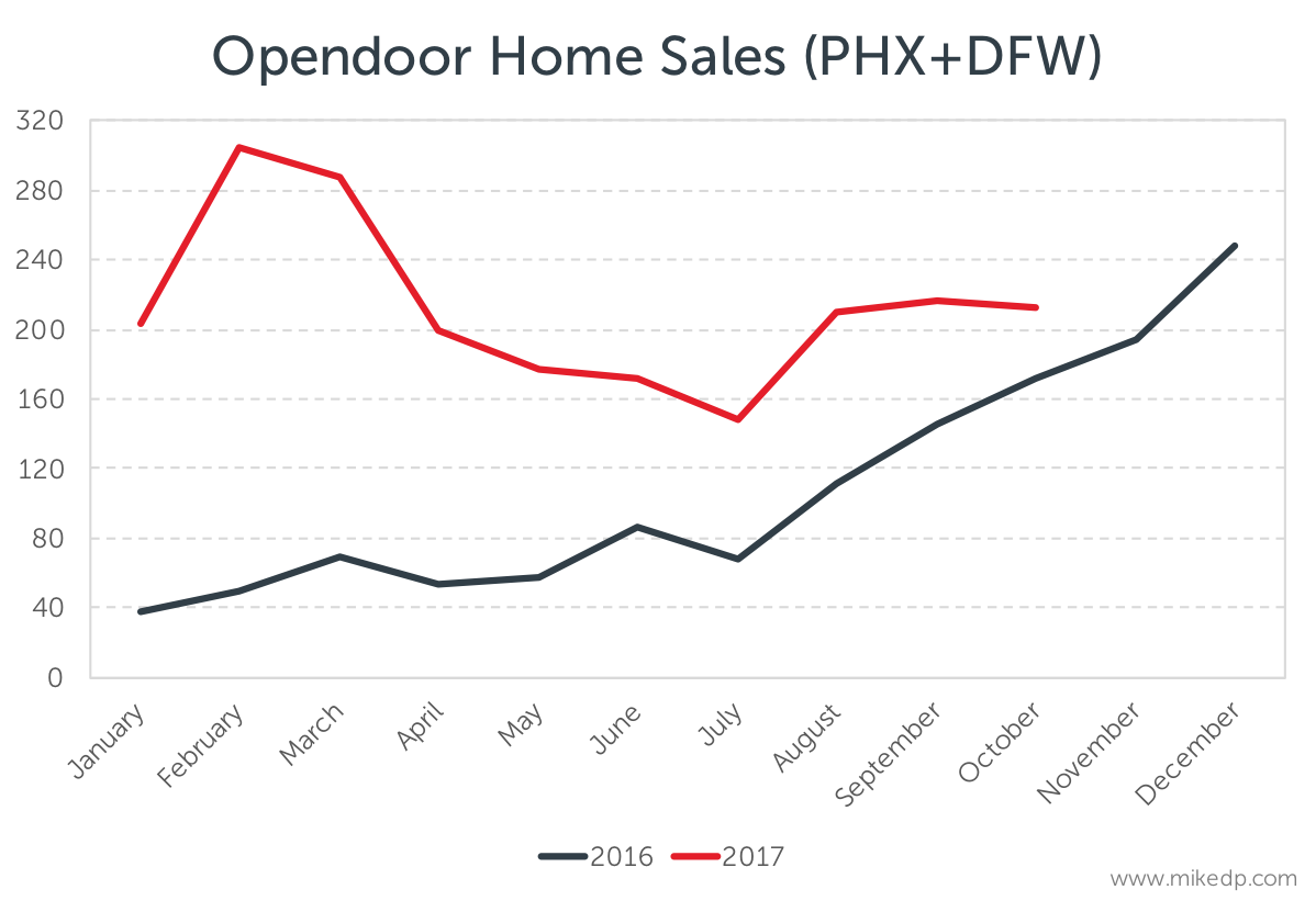 So it should come as no surprise that the first key number -- 150 percent -- is the growth in homes Opendoor has sold in 2017 compared to the same period last year. This is in its two biggest markets, Phoenix and Dallas.