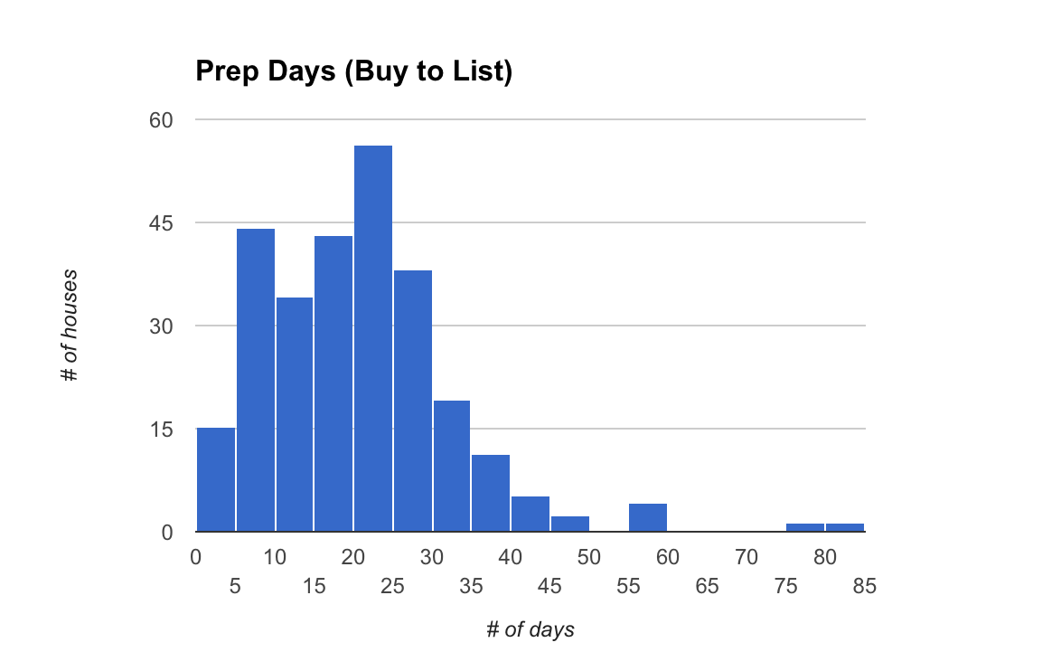 This is the median average number of “prep days” between when Opendoor buys a home and subsequently lists it for sale. This is based on 50 recent transactions in Phoenix and Atlanta (where Opendoor recently launched).