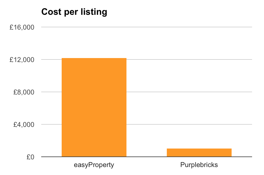 If easyProperty had simply given away 1,000 listings at its list price of £825 each, it would have cost the firm less than 1/10th of what it ended up spending in 2016.