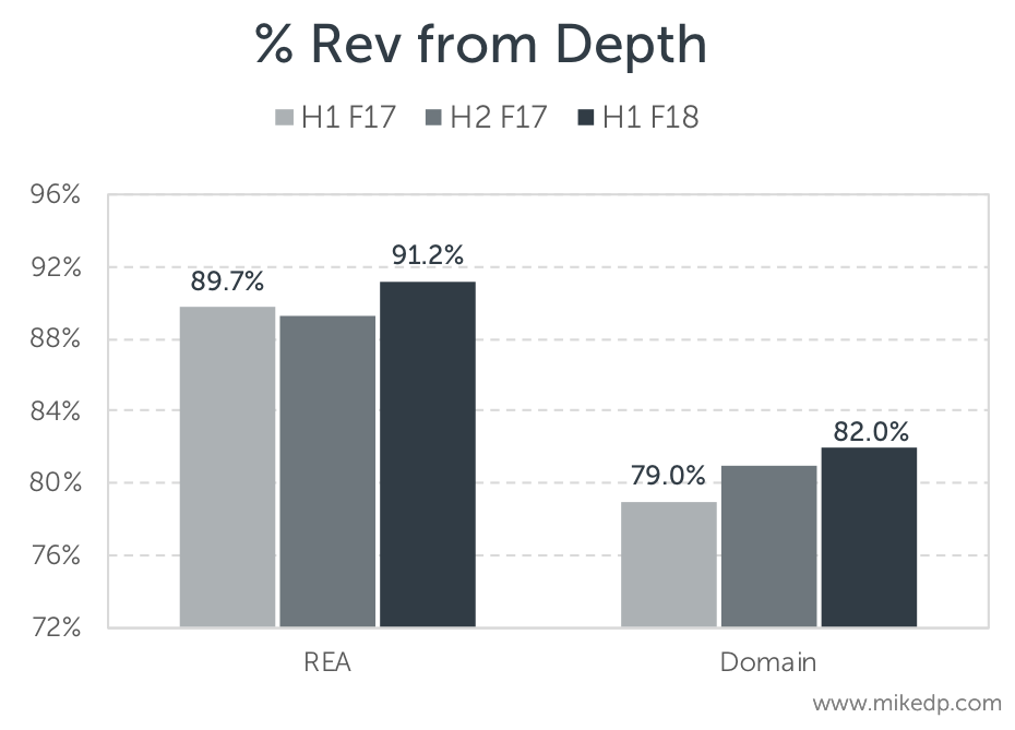 This number isn't changing over time. Both businesses are keeping pace with each other, almost down the the decimal point. In other words, Domain as a strong #2 in the market is not having an adverse impact on REA's ability to grow.