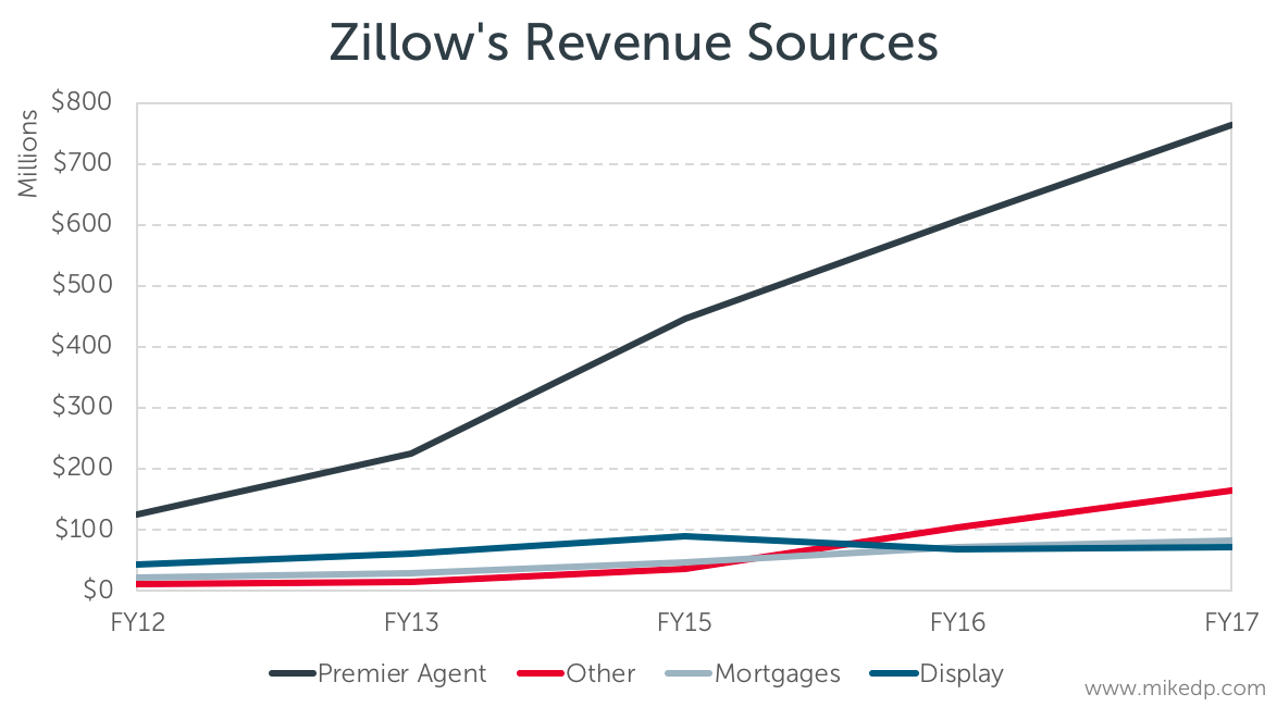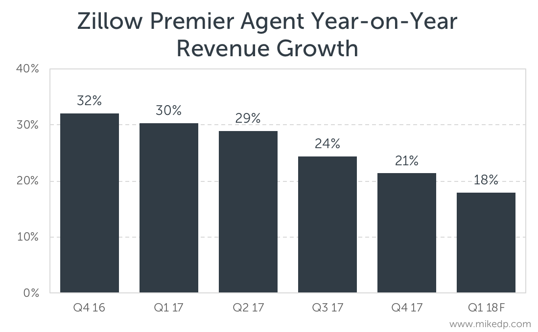 Zillow's slowing premier agent revenue growth will put pressure on the business to develop and exploit new revenue streams. Expect that to be the theme of 2018.