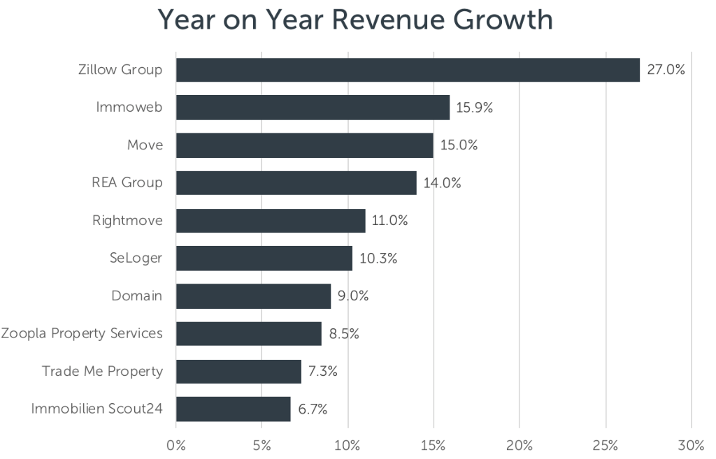 Most businesses eventually reach a terminal growth rate, or a rate at which the business grows in perpetuity. At property portals around the world -- in mature markets where the leaders have effectively saturated the market -- this rate ranges from around five to 15 percent.