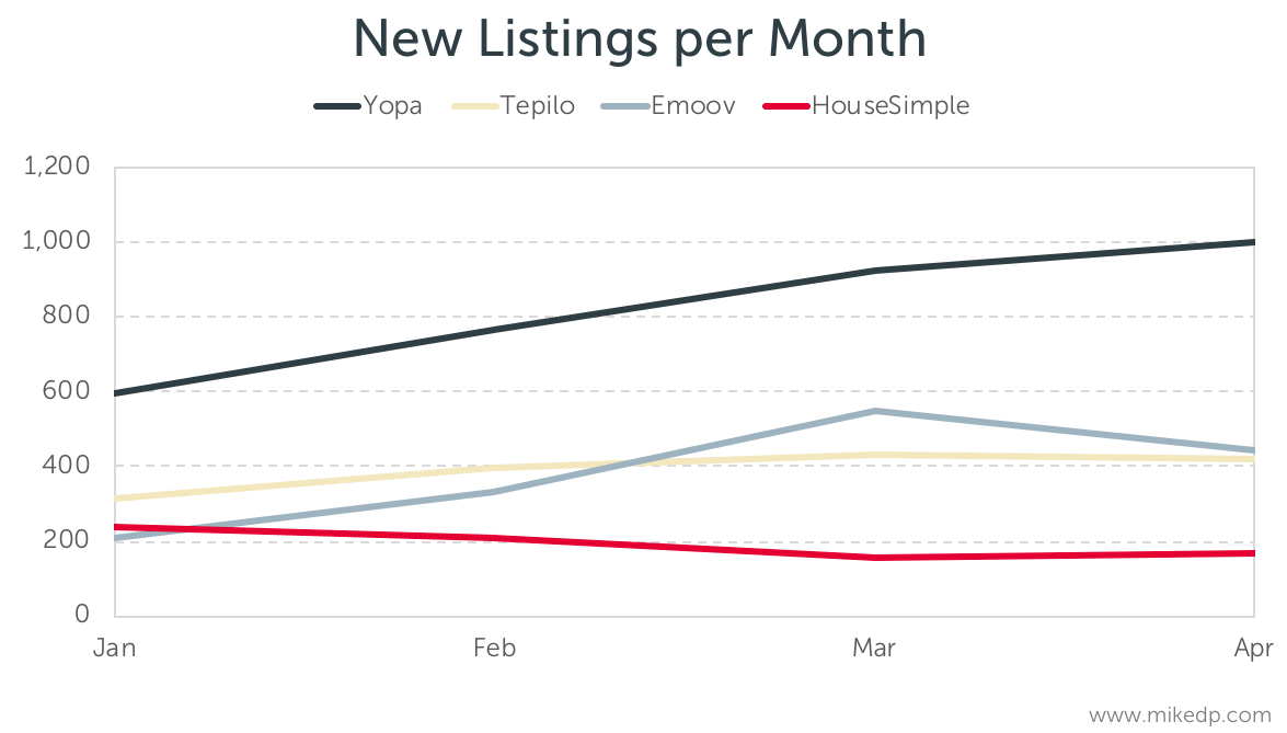 Yopa and eMoov raised a lot of new capital and are deploying it in sustained marketing campaigns. While Tepilo hasn't raised money, it has significantly increased its marketing spend. And HouseSimple's new CEO pulled its marketing spend before a product relaunch.
