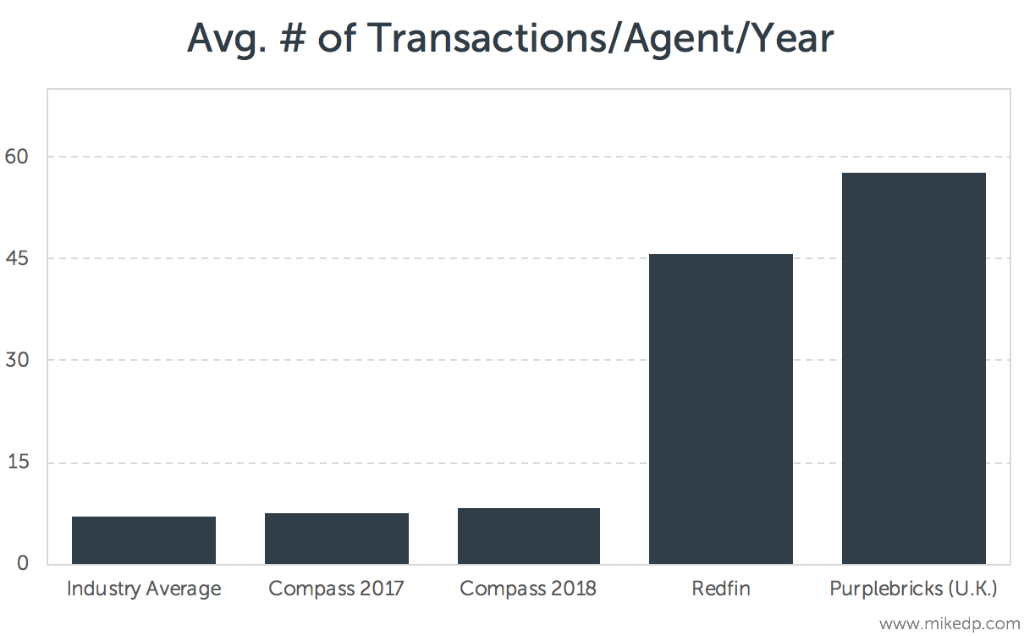 The data above is total number of employees. If we look at overall agent efficiency, as I did earlier this year when comparing Compass, Redfin, and Purplebricks in the U.K., the contrast is more pronounced.