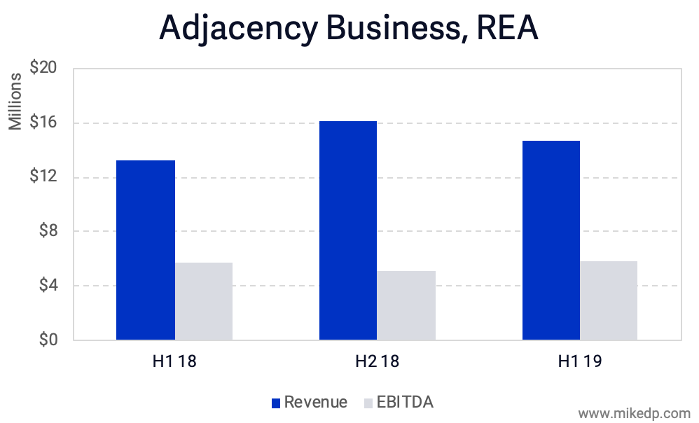 REA's finance business continues to chug along, building revenue and generating meaningful earnings ($5.8 million EBITDA over the last six months).