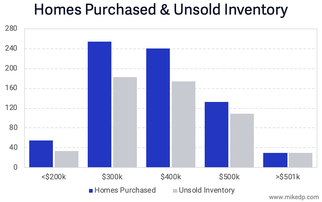 The more expensive the home, the higher proportion of unsold inventory. It takes longer to sell more expensive homes, and it looks like Zillow is more than dabbling in the expensive end of the market.