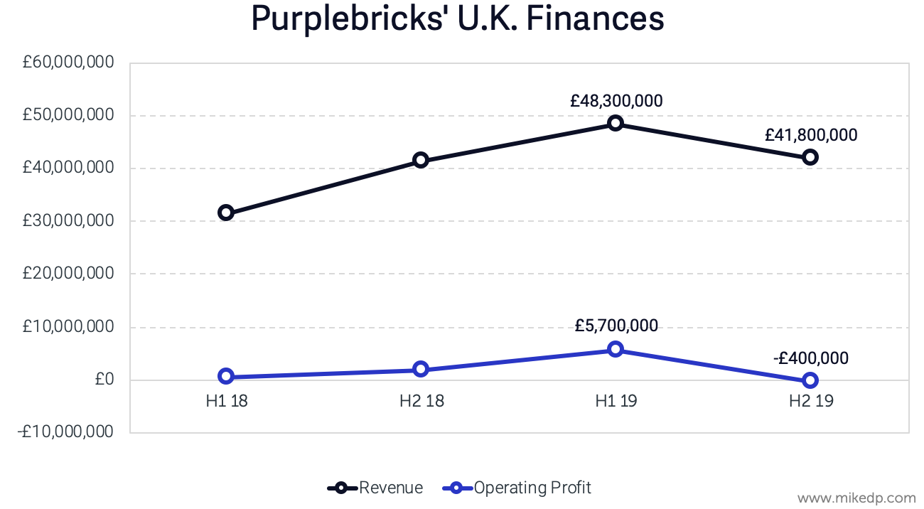 Meanwhile, Purplebricks’ finances for the U.K. operation -- while up for the entire year -- have taken a hit in the most recent six months (December to April, 2019).