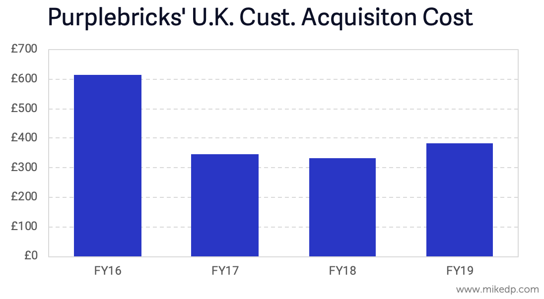 For the first time in its history, Purplebricks customer acquisition cost (or cost per instruction) has increased from the previous year. The trend of increased economics of scale has taken a pause -- perhaps temporary, perhaps not.