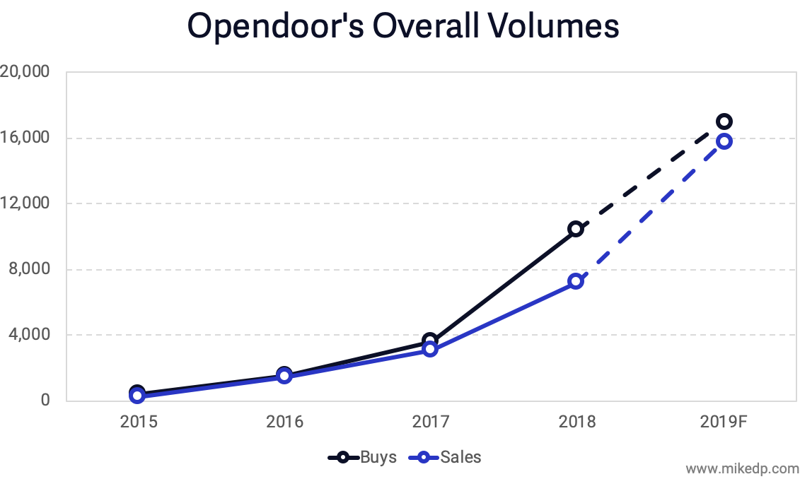 Opendoor has raised over $1 billion—more than 10 times its nearest competitor—and has used that capital to fuel a rapid national expansion (in addition to launching a mortgage venture and acquiring a title company). Opendoor is on track to purchase around 17,000 homes in 2019.