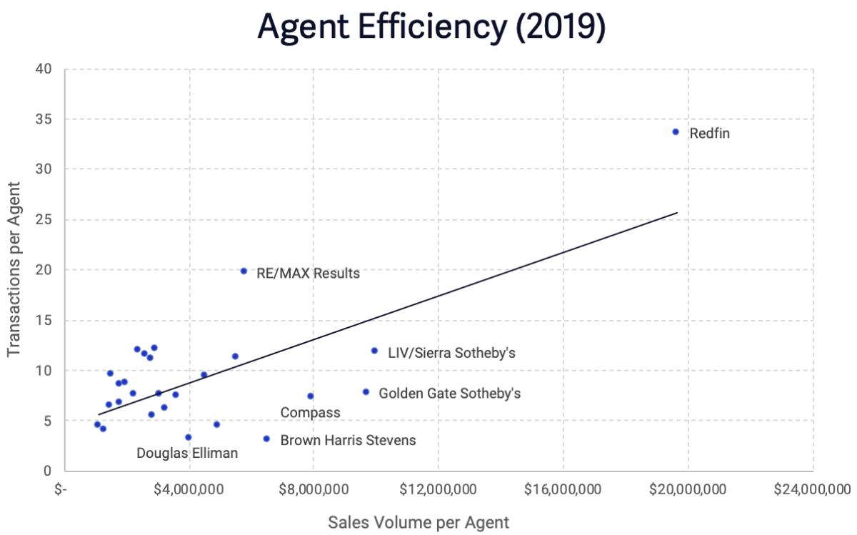 The benefit is perhaps best illustrated by Redfin's agent efficiency, a metric that consistently stands out among its brokerage peers.