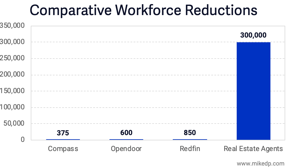Just because Opendoor, Redfin, and Compass are announcing layoffs is not a repudiation of their business models; it’s a reflection of their employment models. Layoffs will hit the traditional industry just as hard; it just won’t be in a press release.