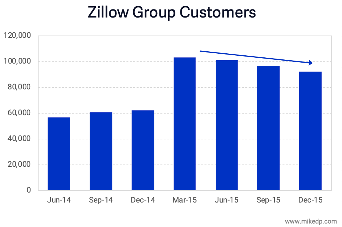 (And just for fun, here is realtor.com's corresponding revenue growth after its acquisition by News Corp in 2014, adding an average of $2.8 million in new revenue each quarter. There's a premium to being the market leader.)