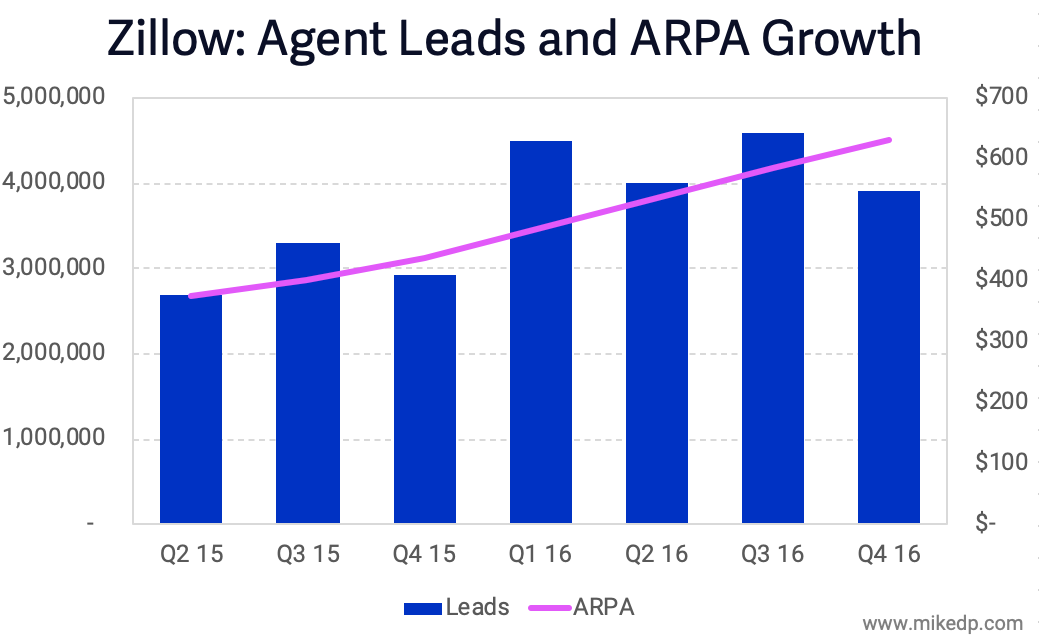 While prices did increase after the mergers, it came with a corresponding increase in customer value. The combined entities were able to deliver more exposure and more leads for their customers. Zillow's increasing ARPA was closely matched by an increase in leads.