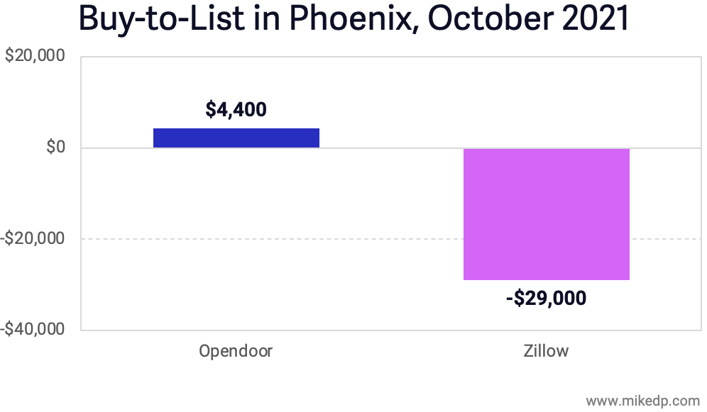 Buy-to-list is a metric that should be, and up until recently was, positive. On average, being able to sell a house for no less than it was bought for is table stakes for iBuying. A loss of $29k on each house -- before any other expenses are accounted for -- represents a catastrophic failure in pricing.