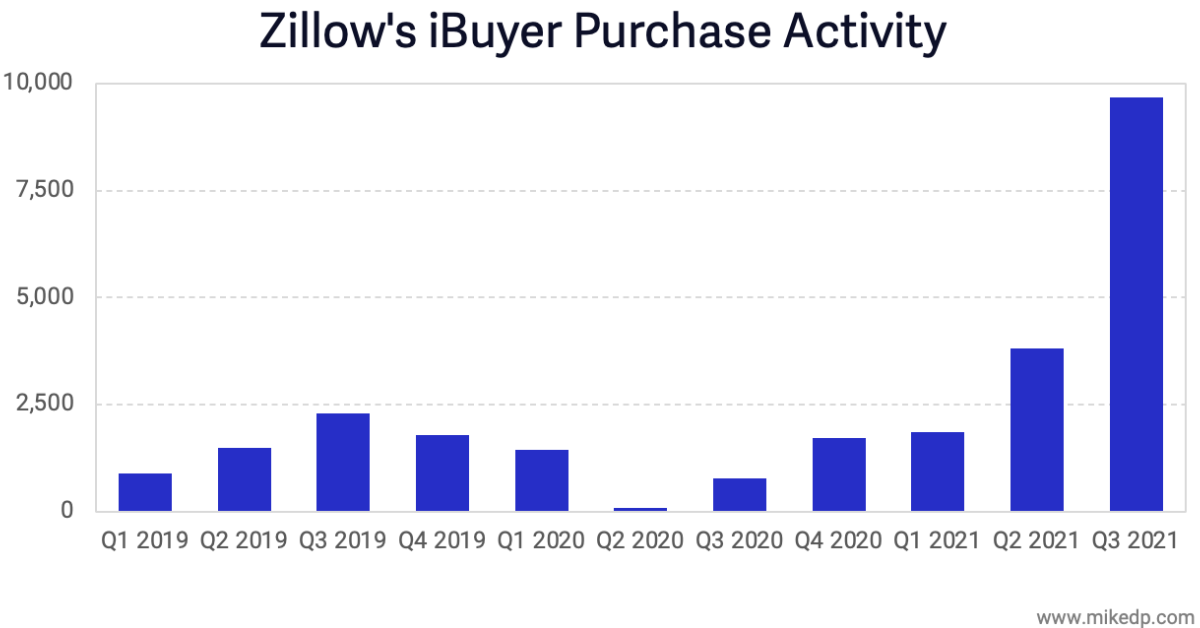 Zillow's iBuyer business grew so fast, so quickly, that it literally broke the company, forcing an abrupt shut down. In Q3 -- the three months that broke the business -- Zillow purchased more houses than in the previous 18 months combined.
