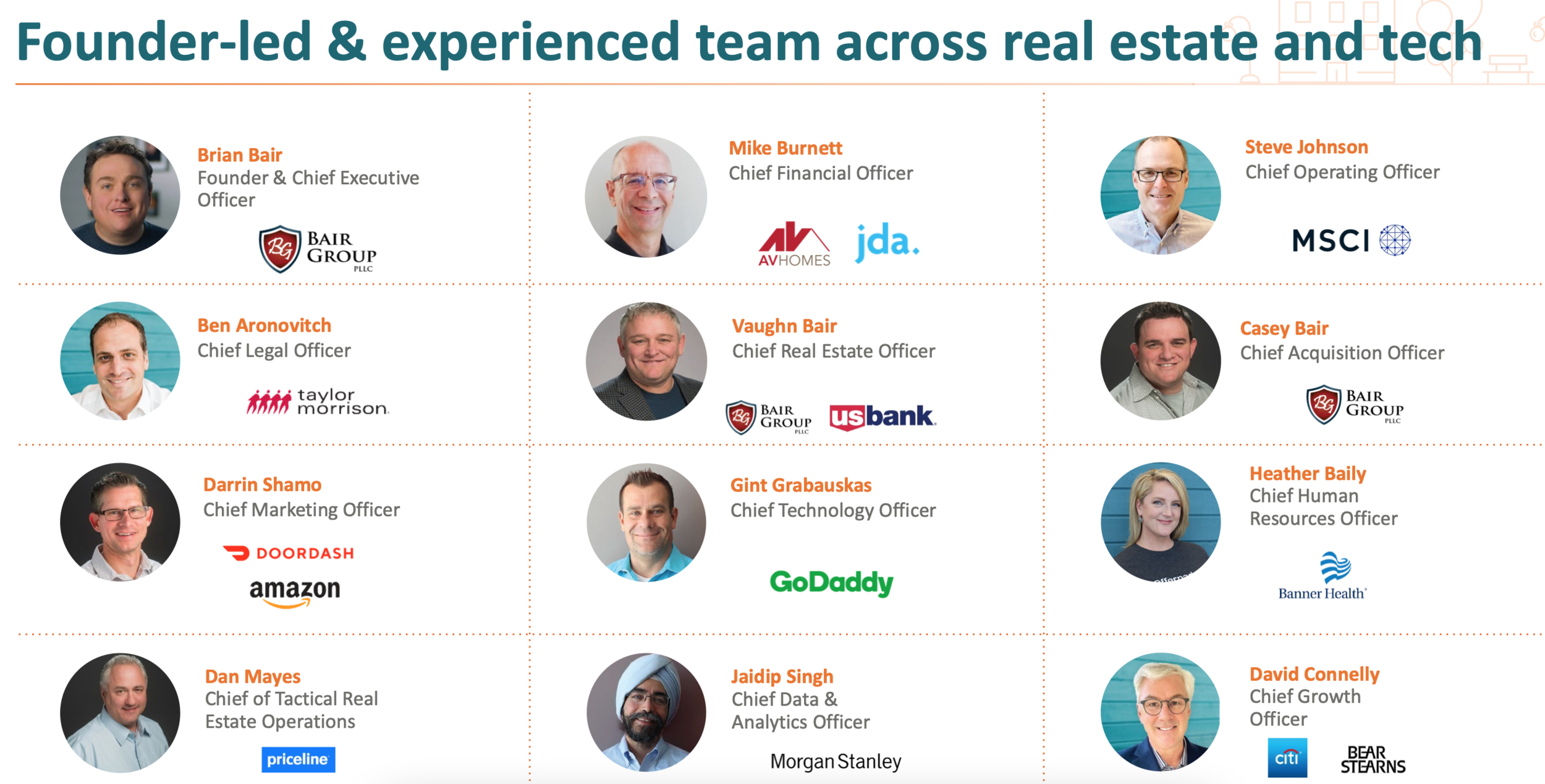 A look at each company's management team is illuminating. Nearly half of Offerpad's team come from a real estate background, including a co-founder (not pictured) that also co-founded single family rental behemoth Invitation Homes.