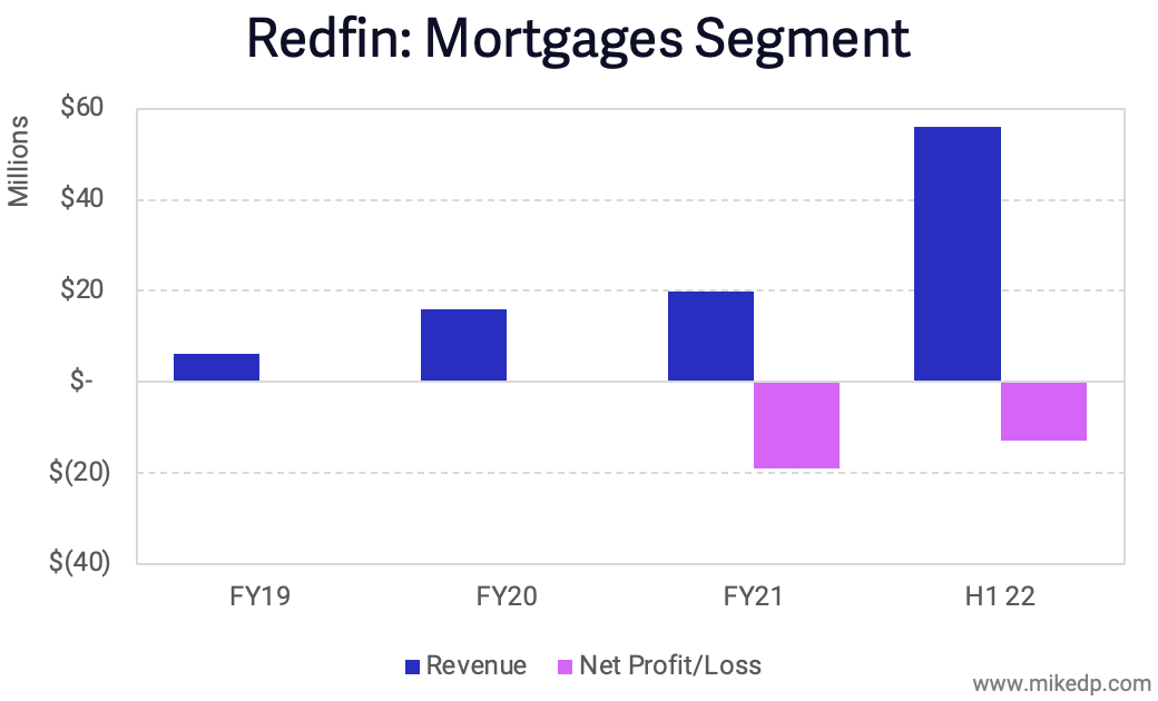 Dig deeper: Redfin's mortgage revenues jumped after its recent acquisition of Bay Equity for $138 million, but the overall business remains unprofitable.