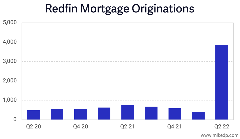 Redfin's mortgage originations jumped in Q2 2022 after its acquisition of Bay Equity and its 485 MLOs.