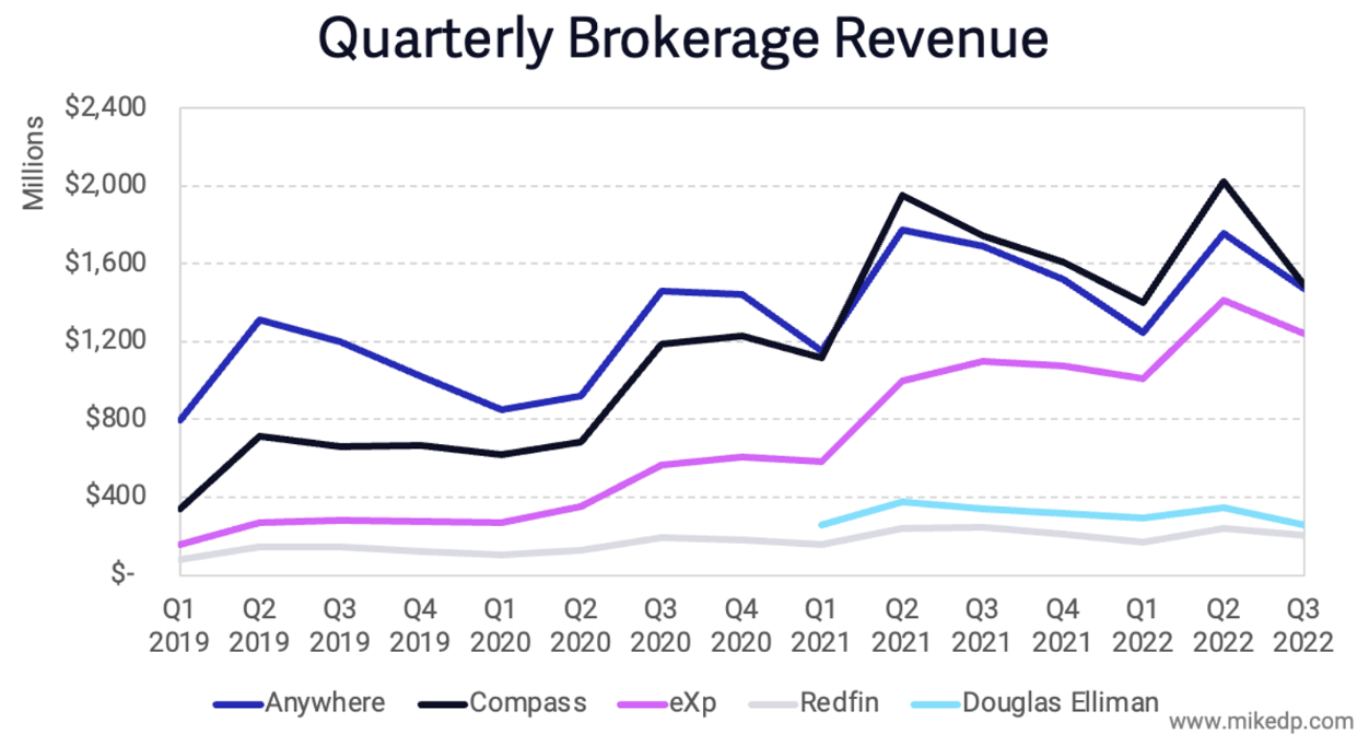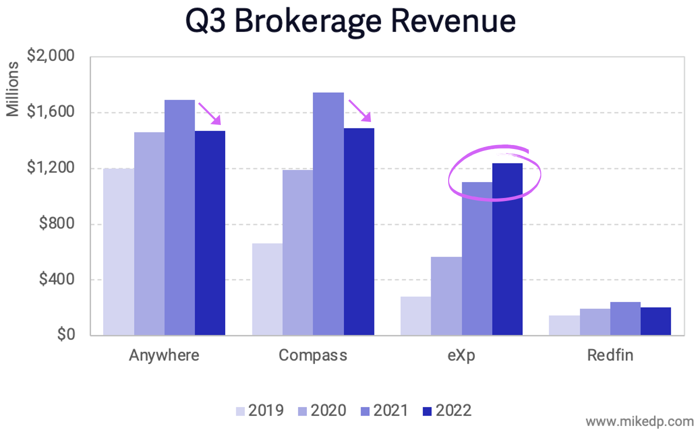 Compared to last year, most brokerages experienced a significant revenue decline in Q3 (remember, 2021 was an outlier).