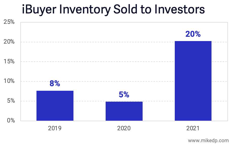 The major iBuyers sold approximately 20 percent of their inventory directly to investors in 2021, more than double the previous high in 2019.