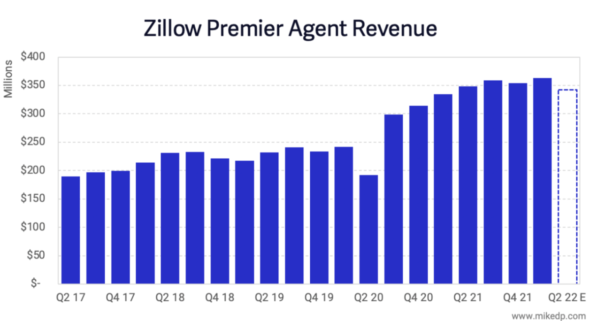 Revenue growth in Zillow's Premier Agent business, which includes Flex, has slowed, and is projected to remain relatively flat in the months ahead.