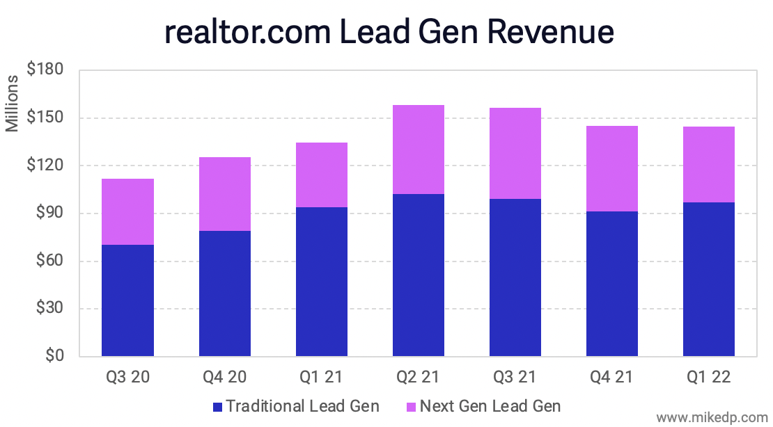 Comparatively, realtor.com's revenues are also flat, and its next gen lead gen business accounts for a similar amount of revenue as at Zillow (28 vs 25 percent).