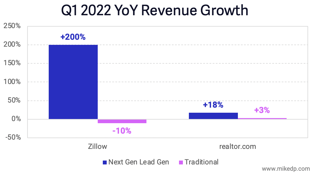 Meanwhile, revenue in Zillow's traditional lead gen business dropped (!) 10 percent during the same time, compared to growth of 3 percent at realtor.com.