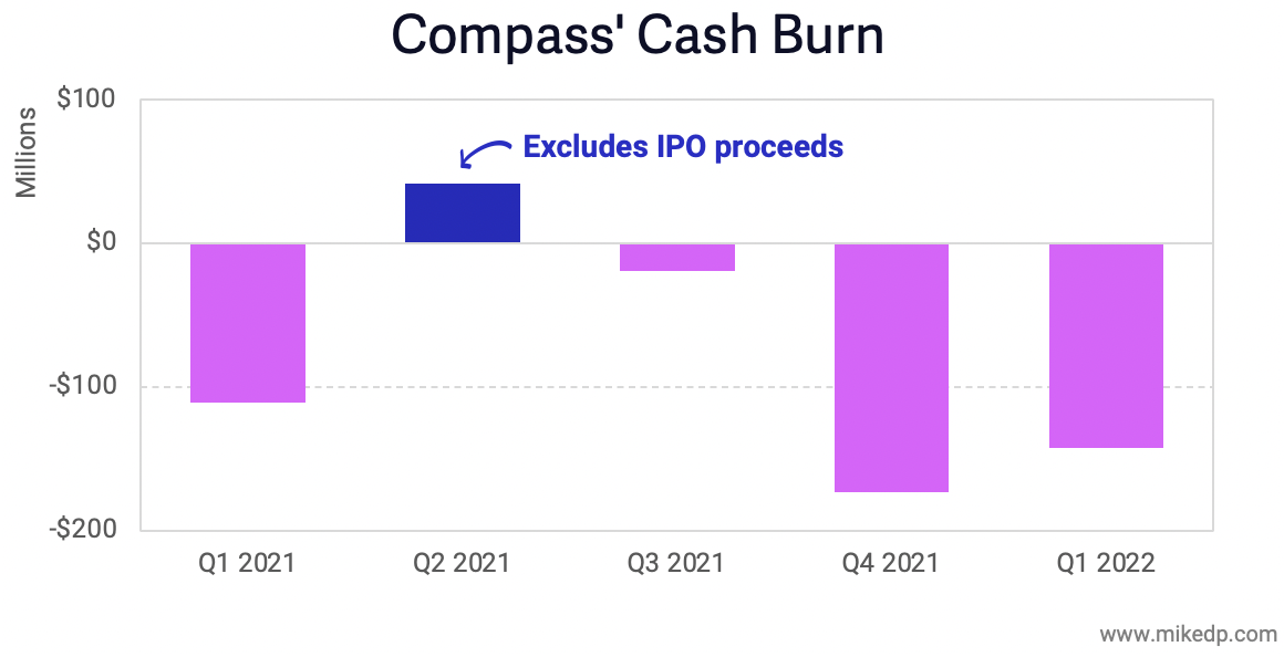 Compass is burning more cash and operates more unprofitably than any of its publicly-listed peers.
