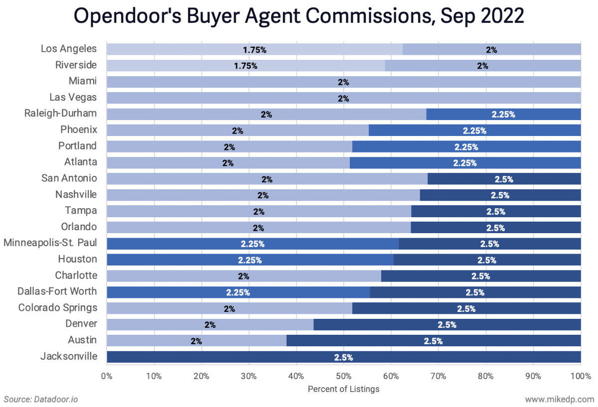 Opendoor's buyer agent commissions range from 0.5 to 1 percent lower than the market average (typically, but not always, three percent).