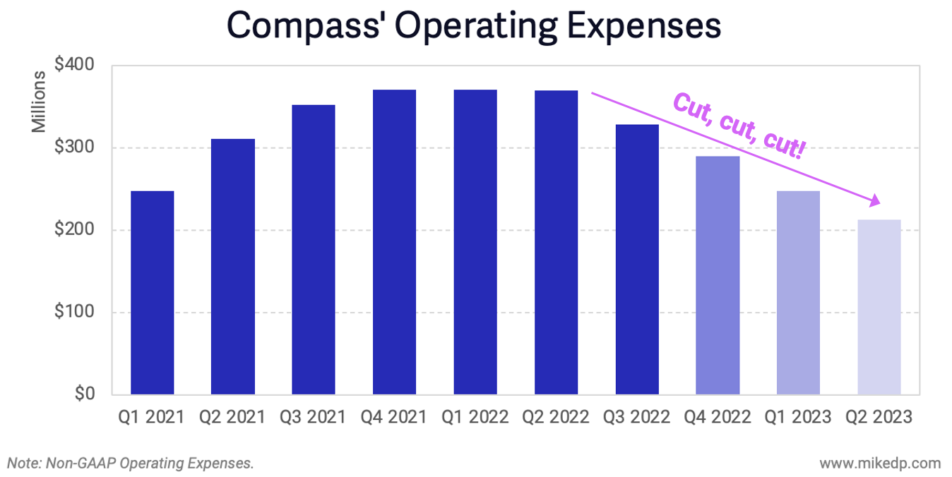 Compass has been racing to cut its operating expenses as quickly as possible (it also recently announced a third round of layoffs).