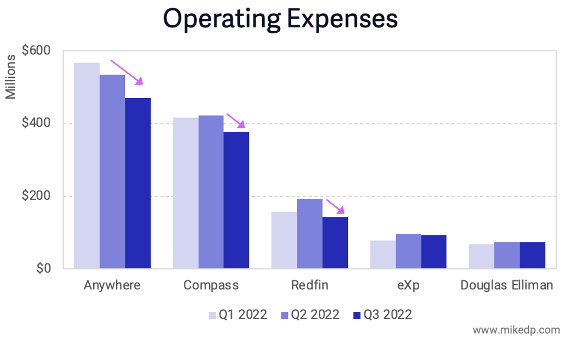 What to watch: Among the big brokerages, Anywhere, Compass, and Redfin have already made significant cost reductions, while eXp and Douglas Elliman are under less pressure to cut costs.