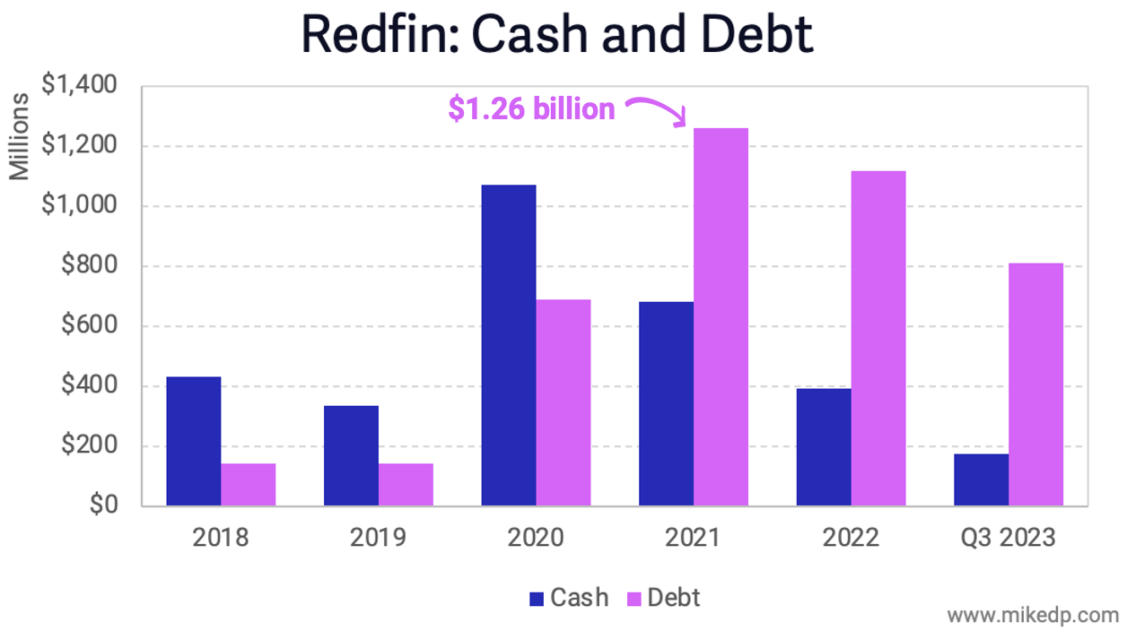It all started with Redfin taking on a substantial amount of debt in 2020, eventually rising to $1.2 billion by 2021.