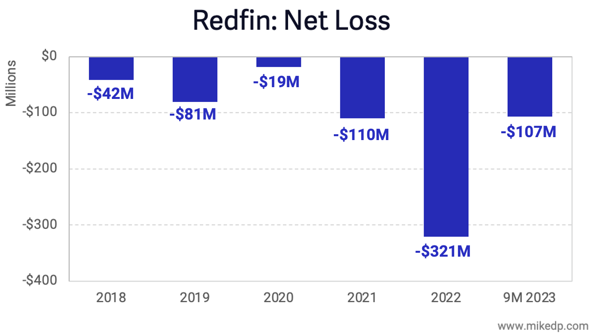 Redfin has incurred a net loss since at least 2018 – it doesn’t appear that the business has ever been profitable.