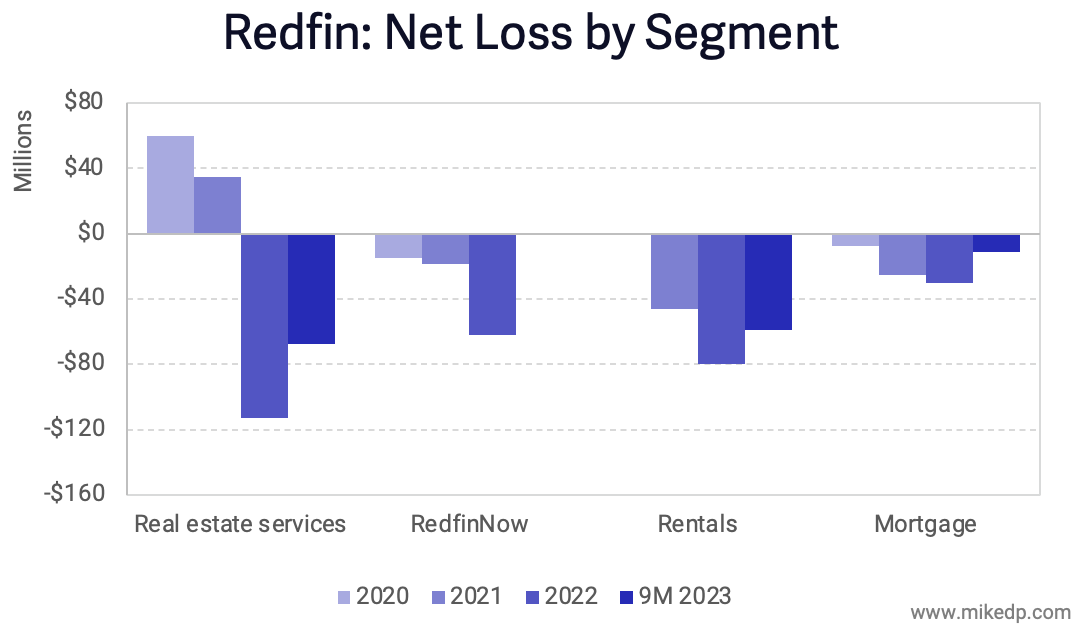 Over the years, Redfin has assembled a collection of unprofitable business lines.