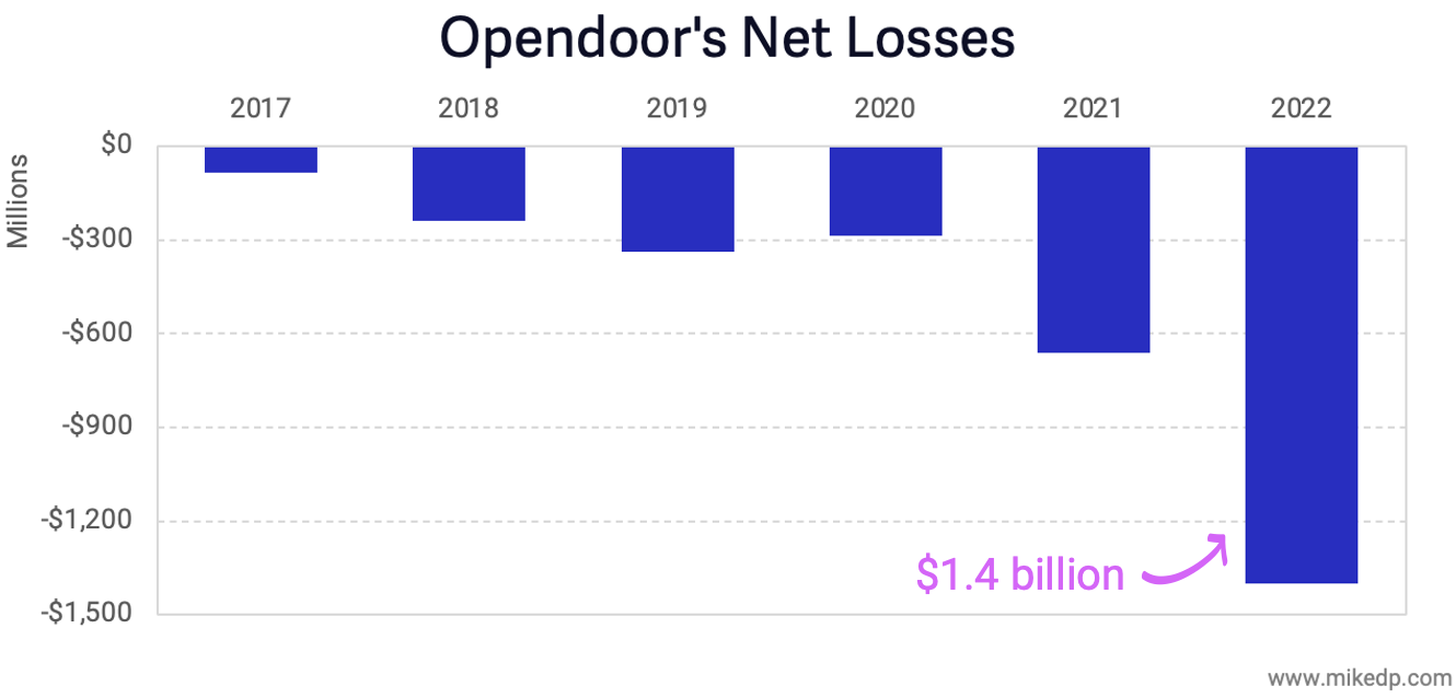 The most noteworthy fact is that Opendoor lost $1.4 billion in 2022 and is still operating (albeit with a new CEO).