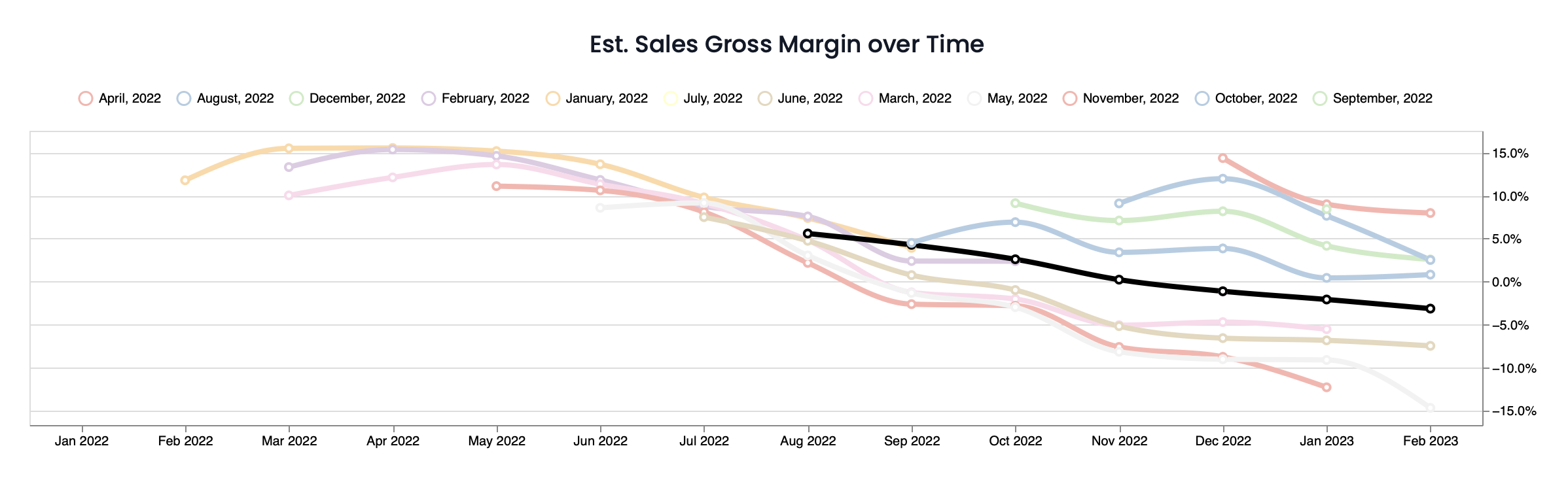 Yes, but: The first homes to sell always have the best gross margins – over time, with price reductions, gross margins fall – as expertly illustrated by Datadoor.io.