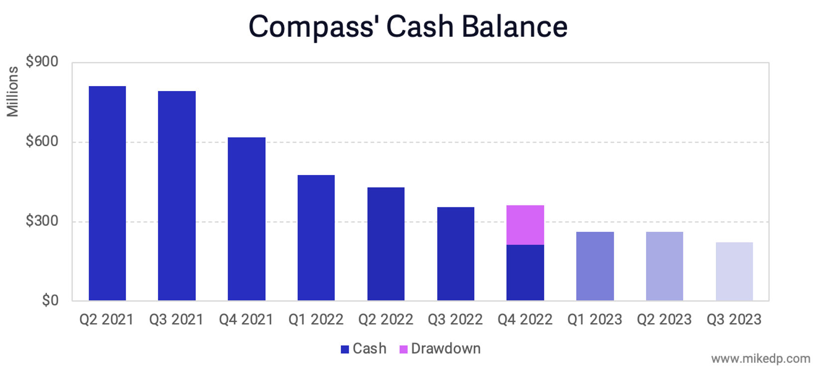 The results are in and Compass burned $143 million in cash during Q4 2022, leaving the company with a cash balance of $362 million.