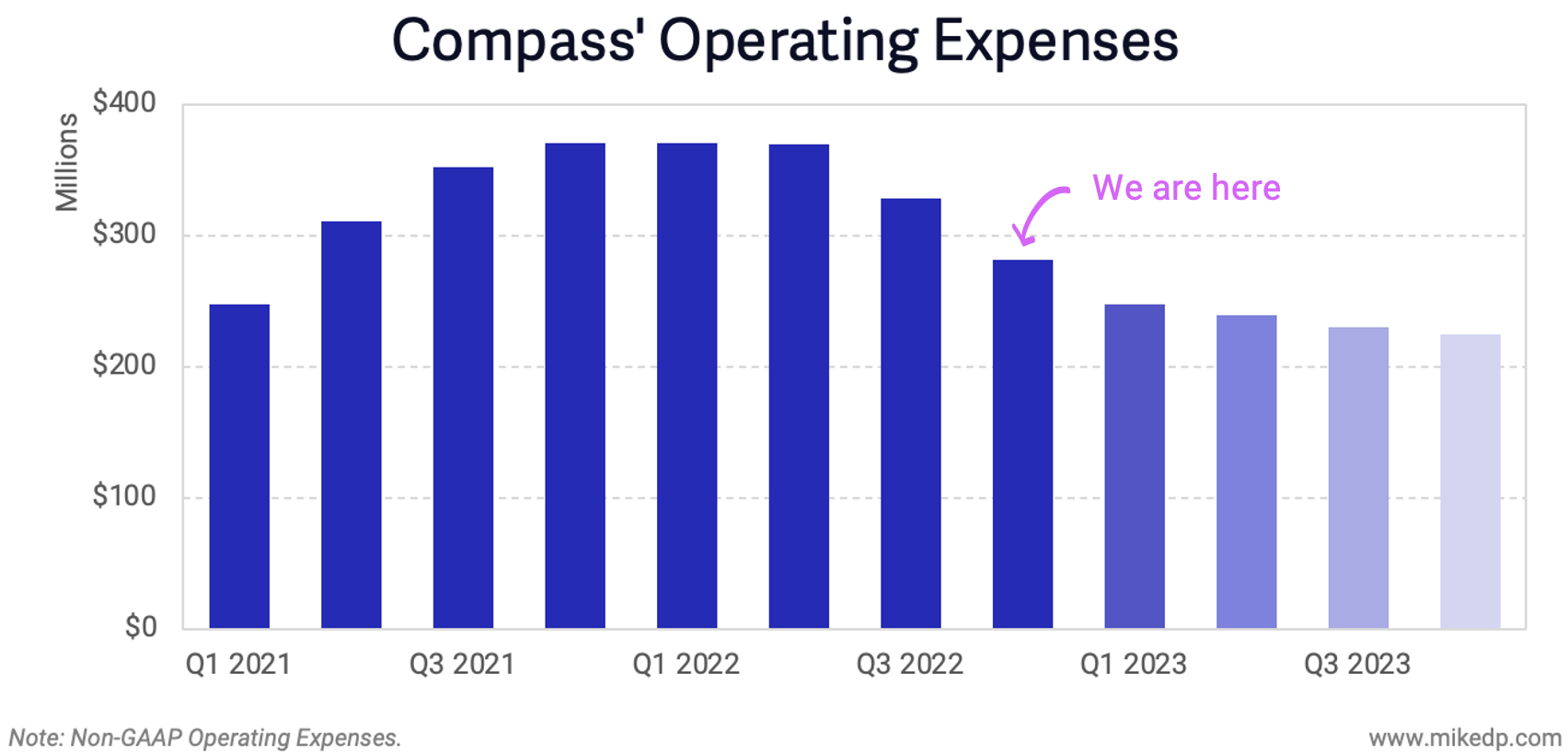 It appears that Compass is aiming for OpEx of around $950 million for 2023, down about 30 percent from $1.35 billion in 2022.
