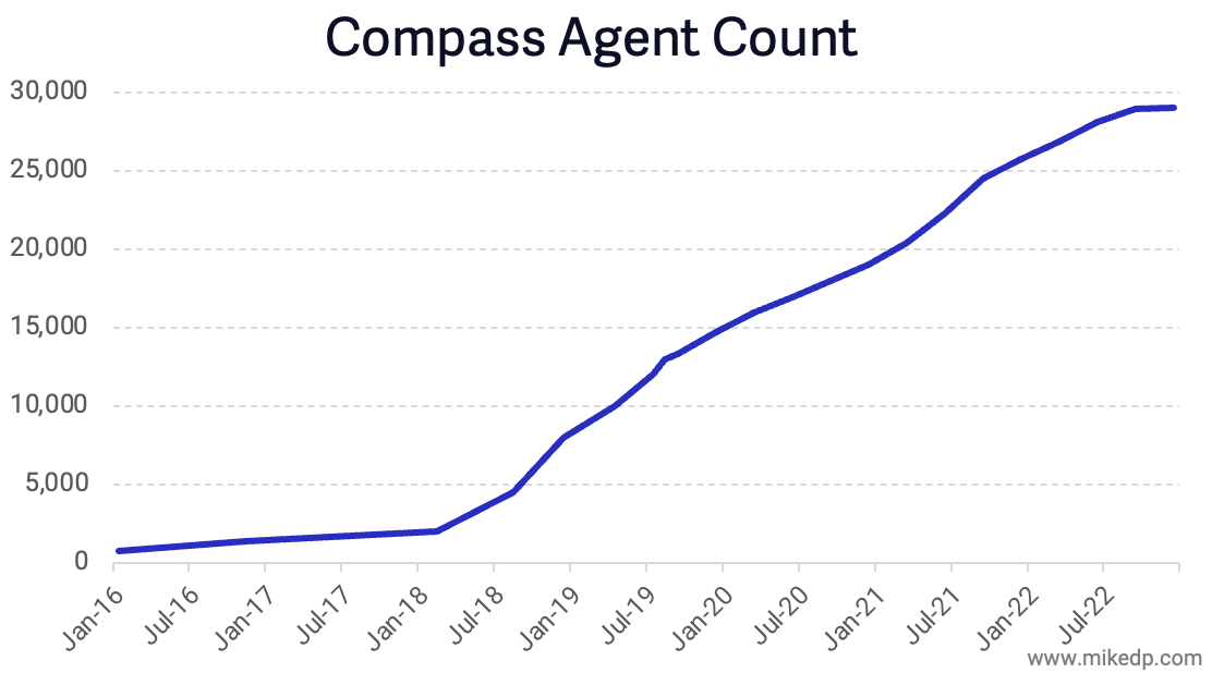 For the first time, Compass’ agent count has gone flat, reflecting the challenging market and environment for agents (less transactions = less agents).