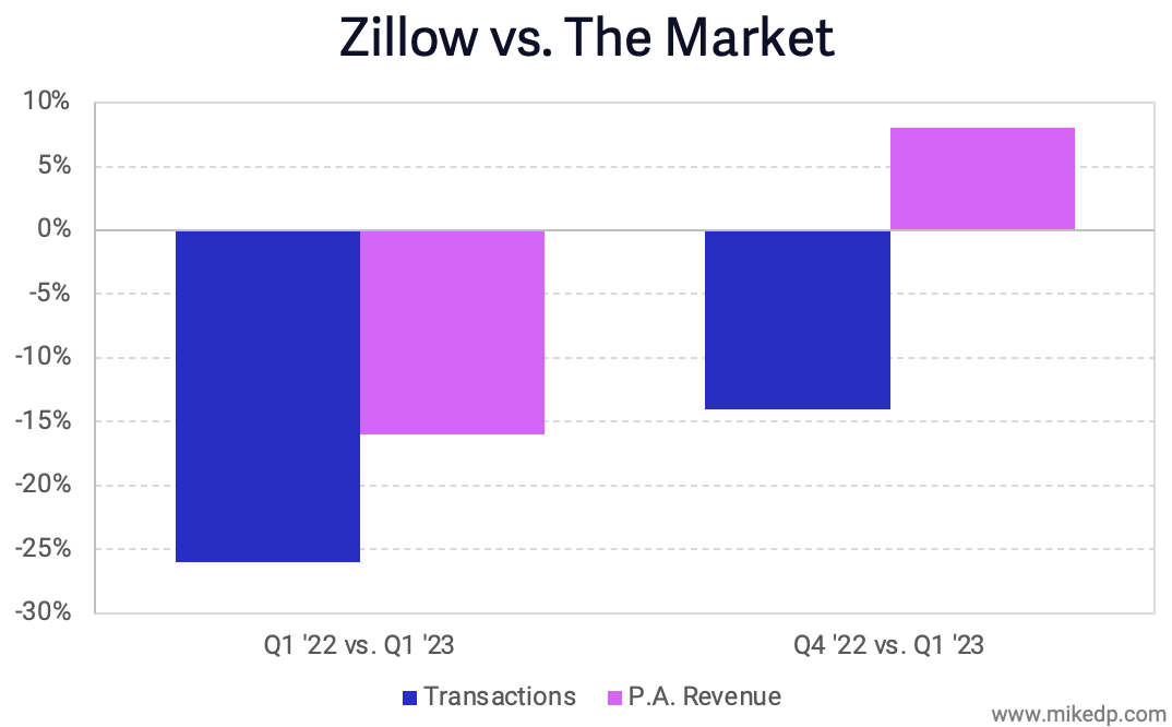 And compared to last quarter, market transactions were down 14 percent while Zillow managed to grow its Premier Agent revenue 8 percent – a noteworthy achievement!
