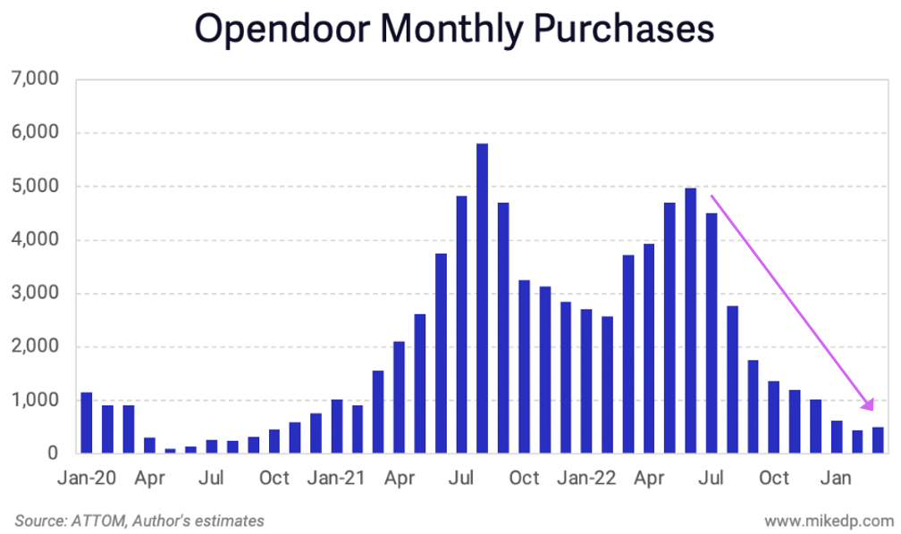 Opendoor’s monthly purchases have dropped eightfold, to levels not seen since the early days pandemic.