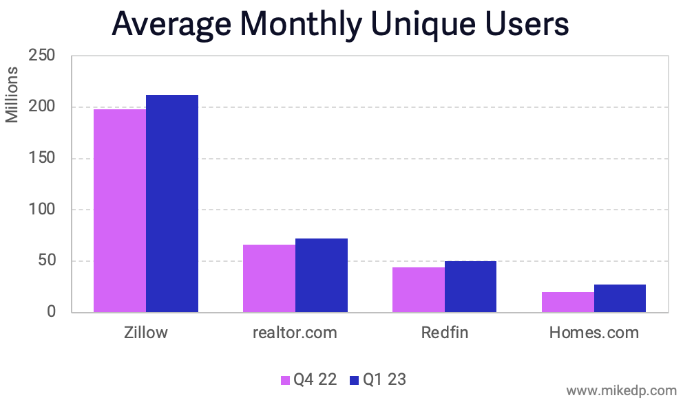 Zillow added twice the amount of monthly unique users than any other portal during the quarter.