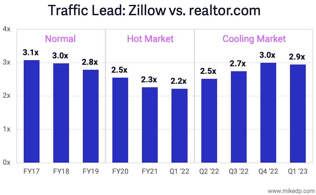 Zillow has increased its commanding lead over realtor.com during the previous year.