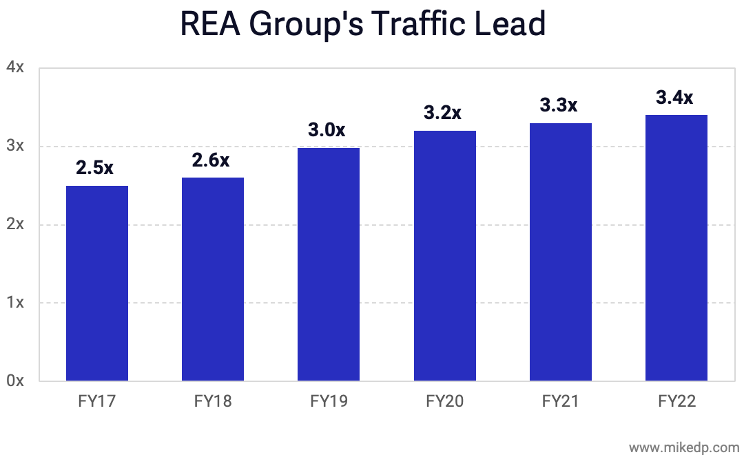In Australia, the top real estate portal (REA Group) maintains a similar lead over its closest rival, Domain Group.