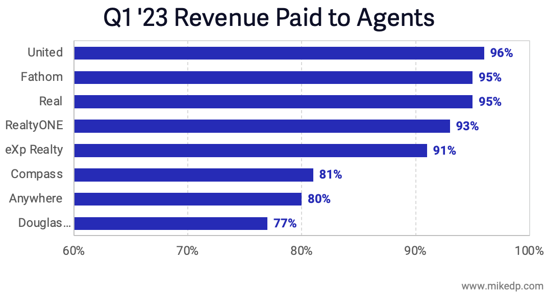 The low-fee / high-split brokerages like eXp Realty, Real, RealtyONE, Fathom, and United end up paying significantly more of the commission out to agents.