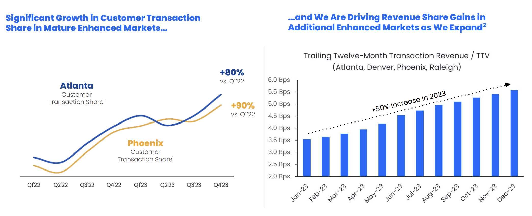 Expansion into 40 markets – as early “enhanced markets,” Atlanta and Phoenix are useful data points, but not necessarily representative of all 40 markets.