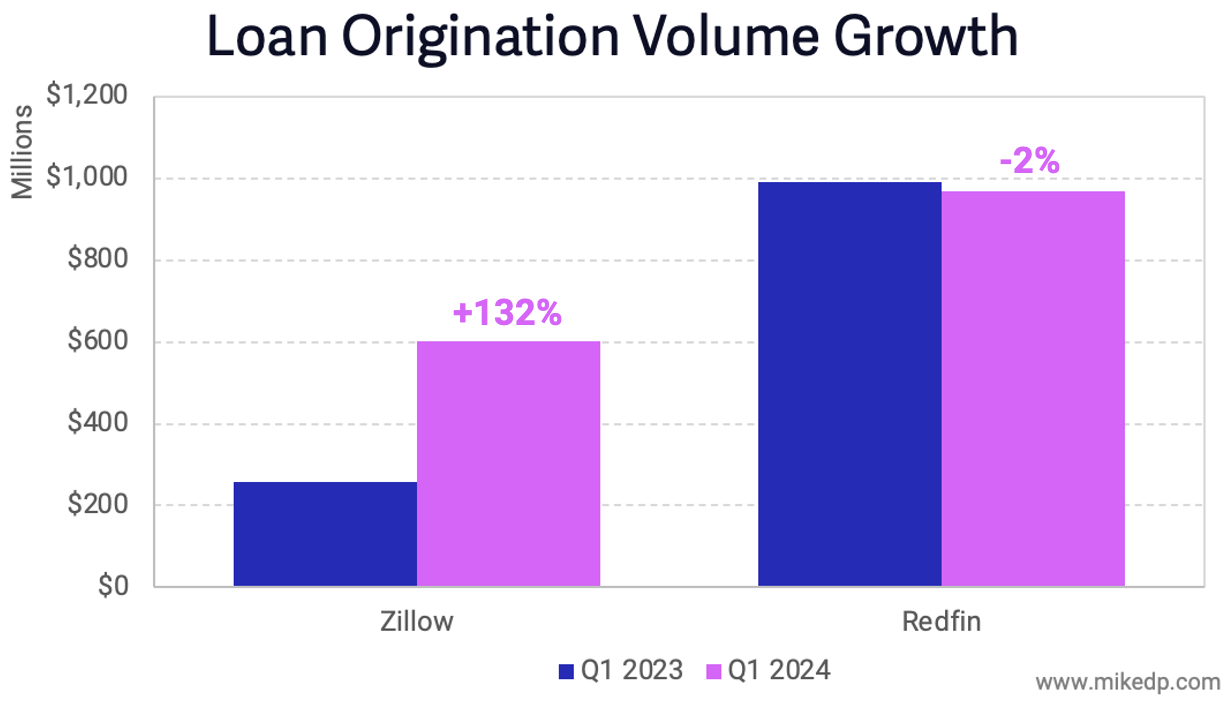 Redfin’s mortgage business is still larger than Zillow’s, but unlike Zillow, it’s not growing.