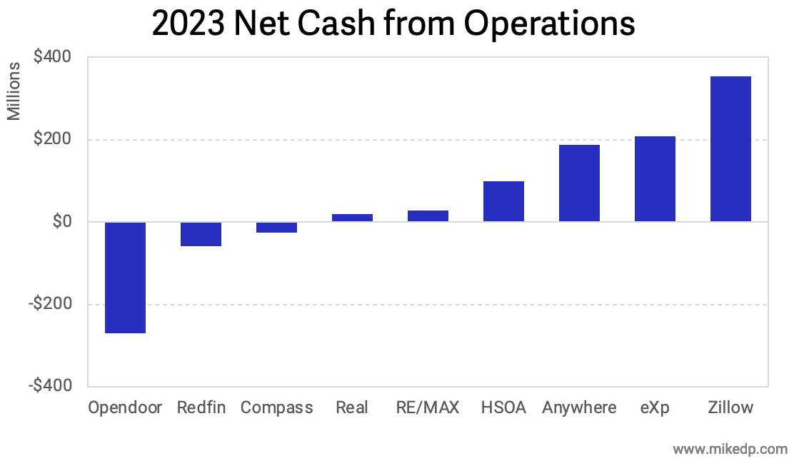 In 2023, Zillow and eXp Realty, followed closely by Anywhere, were all cash-generation machines.