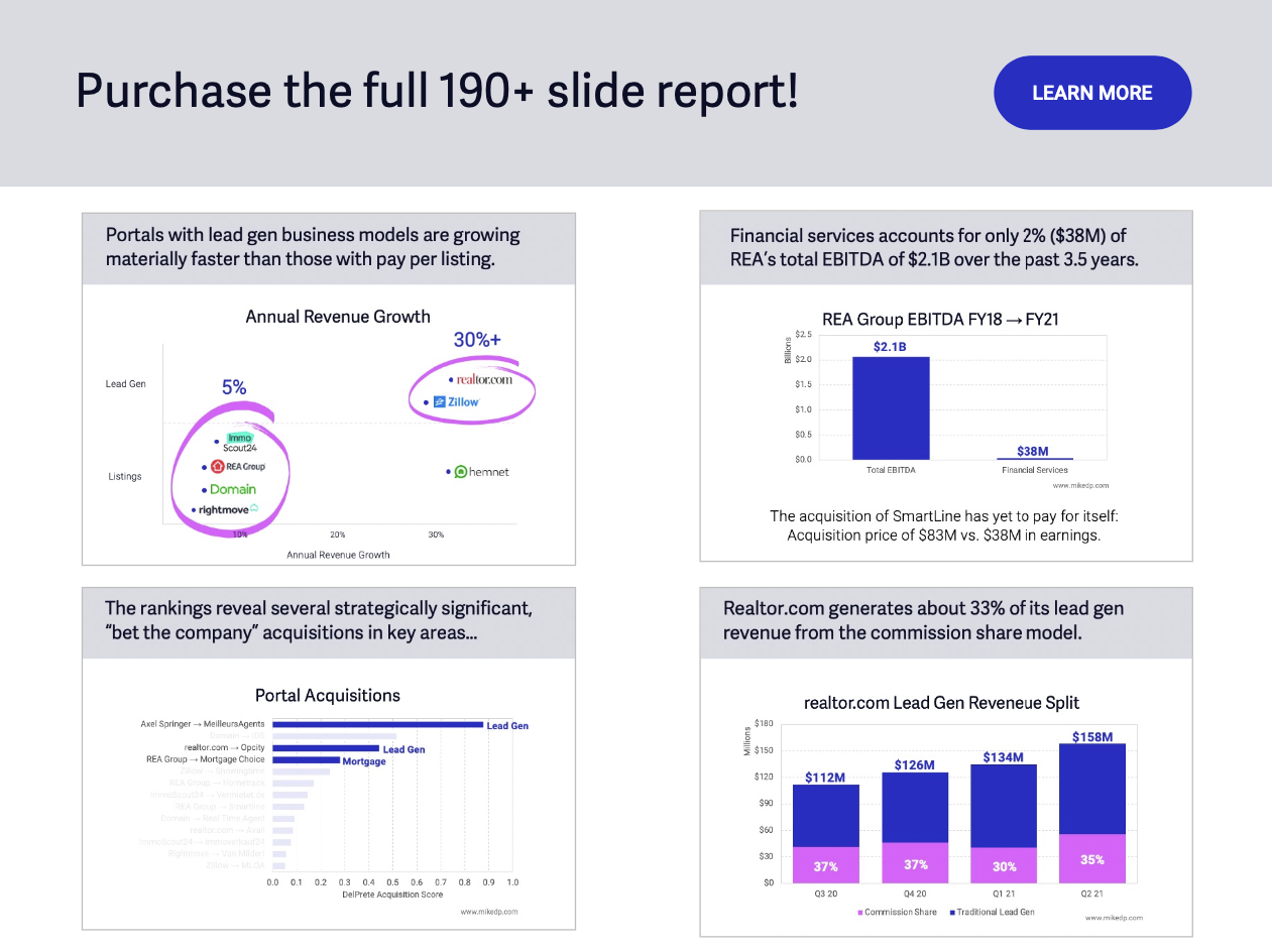 This 190+ slide report is packed with original ideas and evidence-based insights into the growth strategies of the top real estate portals. Check out the free preview version.